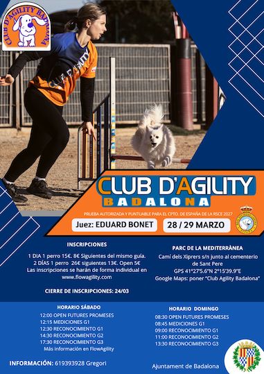 ATENCIÓN: TODAS LAS INSCRIPCIONES Y EL PAGO se tendrán que hacer por la plataforma WWW.FLOWAGILITY.COM